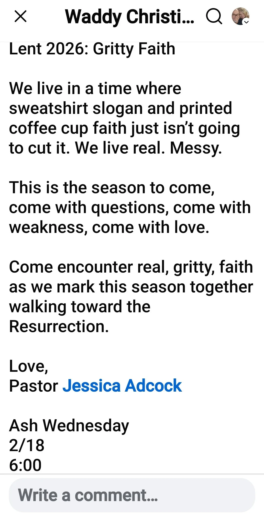 Welcome to Our Waddy Christian Church Community